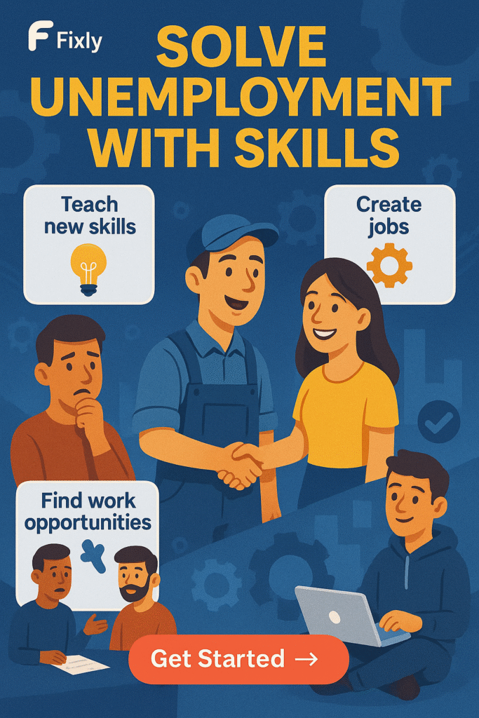 Fixly is built to solve unemployment through skills. It connects people who are looking for work with those who need services. Whether you are a freelancer, technician, or skilled worker โ Fixly helps you find the right opportunity.