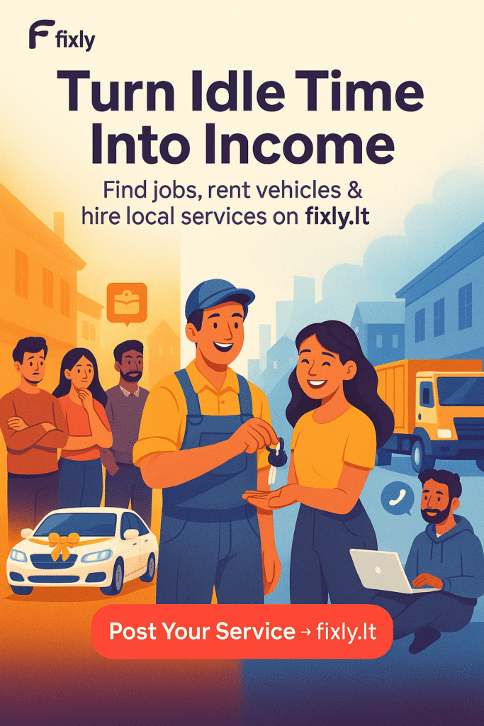 Fixly is a digital platform designed to connect people with opportunities. Whether itโs finding jobs, renting vehicles, or hiring local services โ Fixly makes it possible to turn your idle time into income.